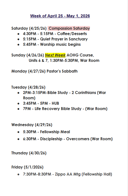 Our Discipleship / Outreach begins at 6:30pm and ends at 8pm